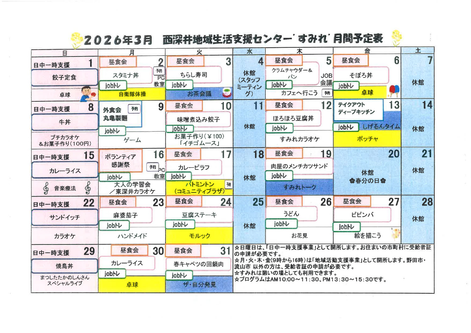 2026年3月の予定はこちら